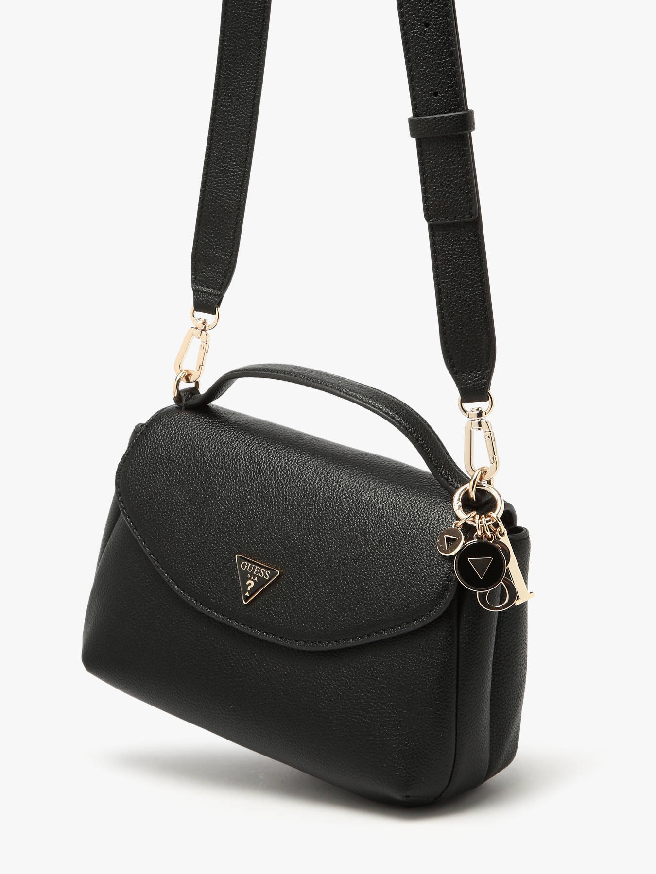 The EVIE GUESS handheld bag, made of P.U., combines elegance and practicality. The exterior features a flap with a magnetic closure for easy and secure access. It includes a back pocket, perfect for keeping essentials within reach. The handle height is 4 cm, ideal for stylish handheld carrying, while the adjustable and removable shoulder strap allows for crossbody wear as desired. Inside, the bag offers a single compartment with two simple pockets and one zippered pocket, enabling organized storage of your personal items. The EVIE is a versatile and chic accessory, perfect to complement all your outfits.
