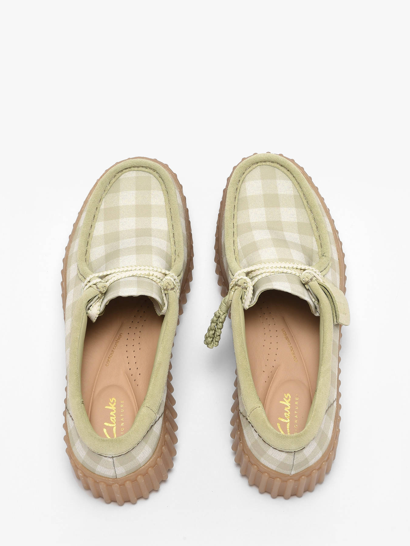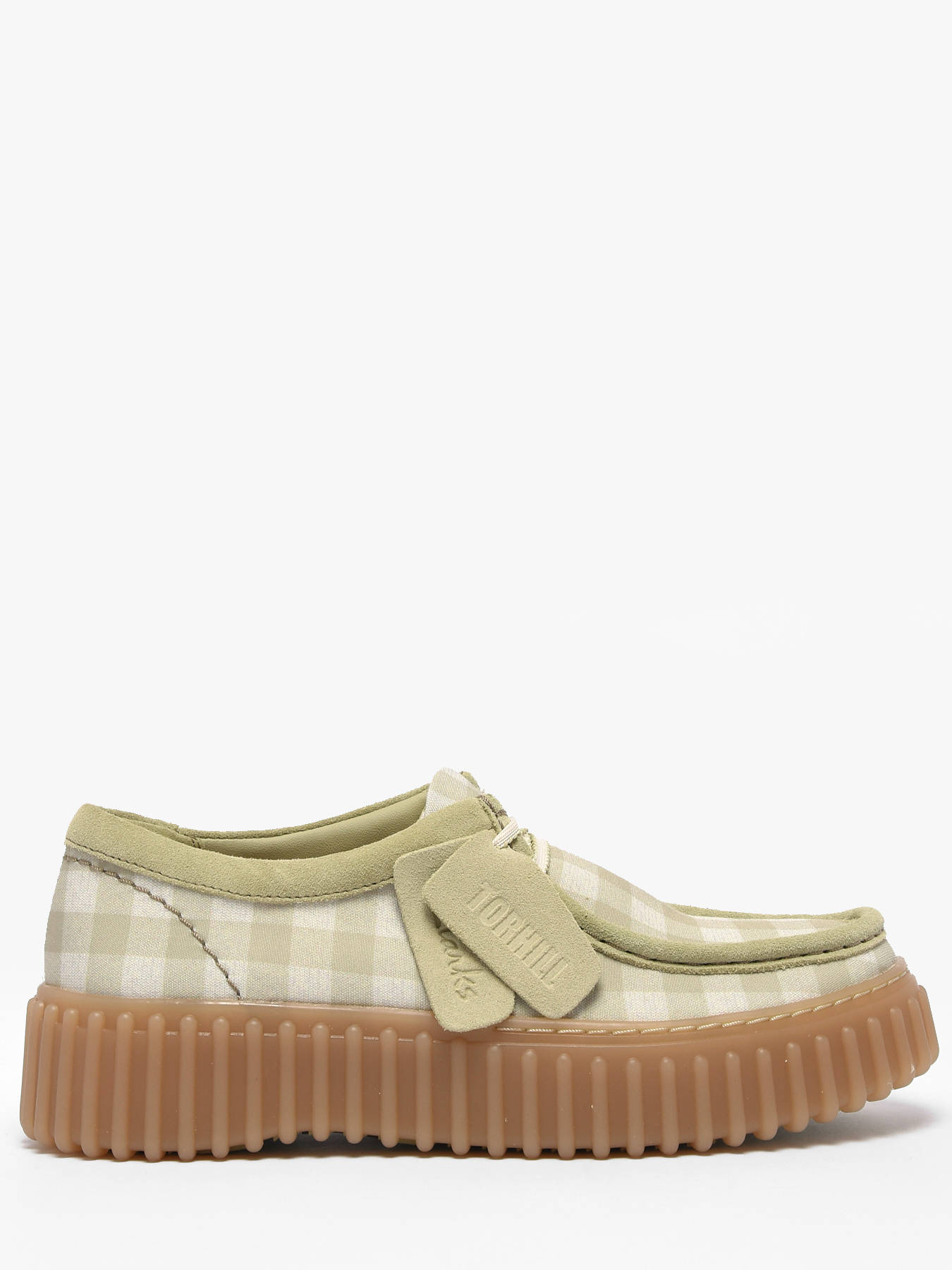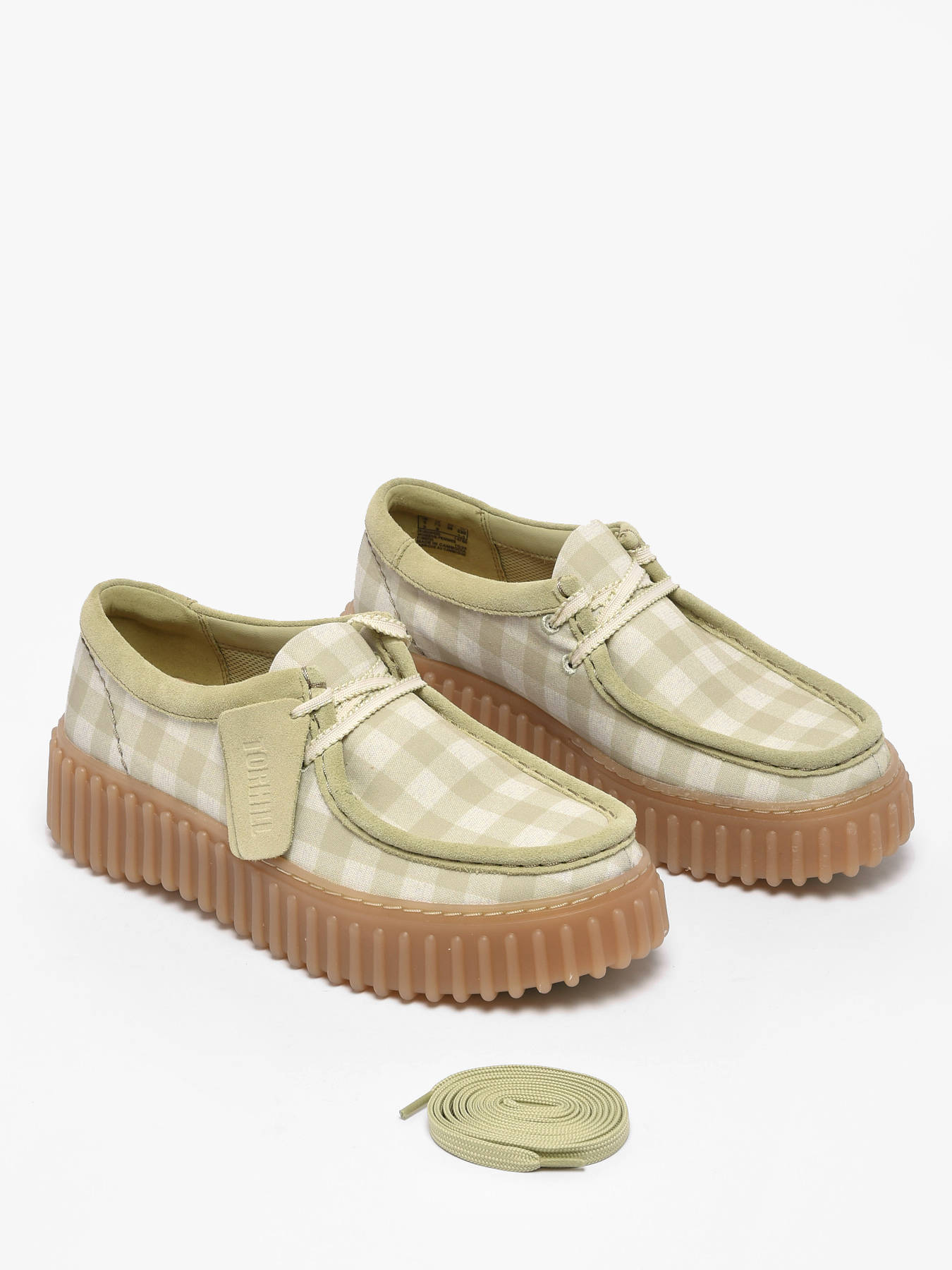 The Torhill Bee derby shoes by Clarks reinterpret the brand’s iconic heritage with a fresh, contemporary and spring-ready look. Their textile upper in soft pale green and cream gingham brings a light, refreshing touch, perfect for the season. Inspired by Clarks archives, the bold ribbed outsole gives the shoe a strong identity while feeling thoroughly modern. The clean lace-up design highlights smooth curves and contours, enhanced by intricate stitching details that showcase thoughtful craftsmanship. Made with premium materials, the Torhill Bee delivers an ideal balance of comfort, casual style and heritage inspiration. An easy-to-wear everyday shoe, designed for those who appreciate subtle originality and timeless elegance with a modern twist.