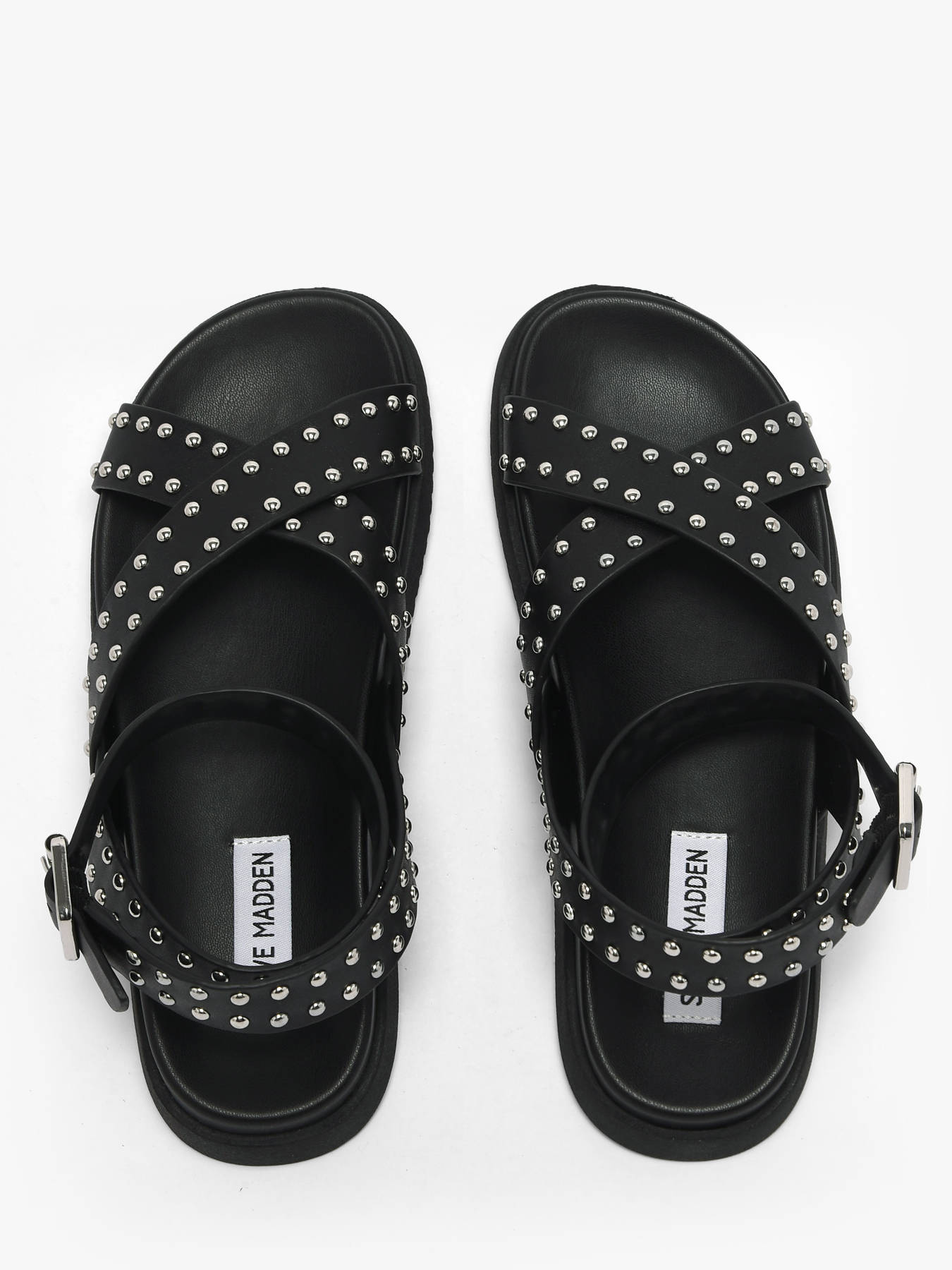 Les sandales My Bestie de Steve Madden allient audace et élégance avec un style contemporain et affirmé. Conçues en cuir lisse noir, elles présentent des brides croisées ornées de studs argentés et une fermeture à boucle réglable à la cheville pour un maintien optimal et un ajustement personnalisé. La doublure en cuir et la semelle intérieure en synthétique assurent un confort durable tout au long de la journée, tandis que la semelle noire épaisse offre stabilité et résistance. Parfaites pour sublimer vos tenues estivales ou apporter une touche rock-chic, ces sandales reflètent l’esprit audacieux, dynamique et résolument individuel de Steve Madden dans un design moderne et sophistiqué.